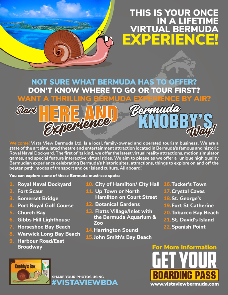From our virtual Knobby’s Experience of Bermuda , to our simulated rides, to your on-foot tour of the island, when you visit Bermuda you will have a story to tell.